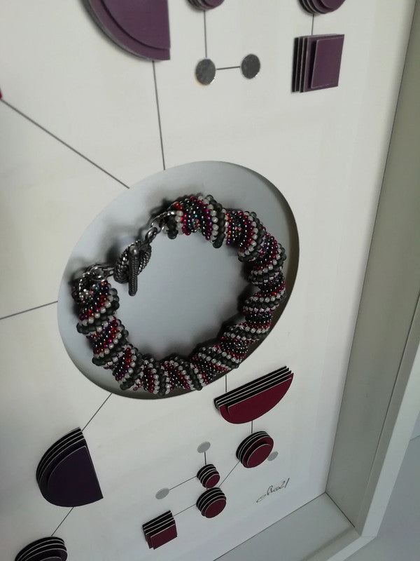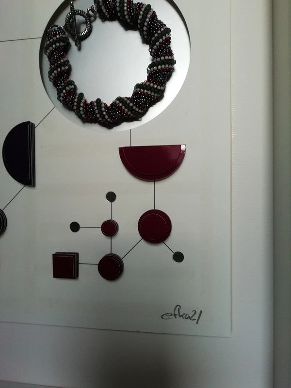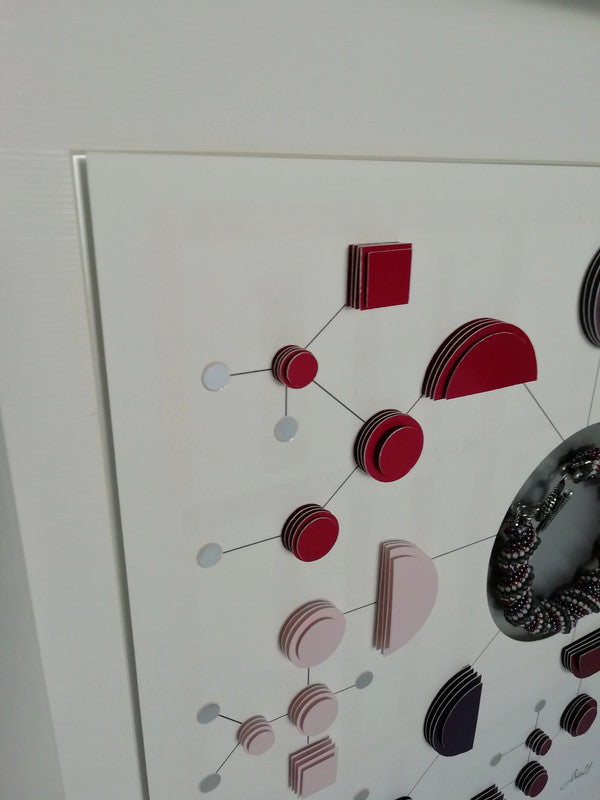 Cette création remarquable explore la tension fascinante entre ordre et chaos, géométrie stricte et motifs organiques. Elle évoque les connexions invisibles qui régissent notre monde, rappelant à la fois l'art constructiviste et les illustrations scientifiques les plus élégantes.